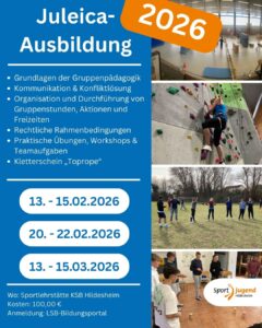 Die Sportjugend Hildesheim bietet auch 2026 wieder eine umfassende Juleica-Ausbildung für alle ab 15 Jahren an, die sich für die Kinder- und Jugendarbeit qualifizieren möchten. Neben pädagogischen und rechtlichen Grundlagen erhältst du viele praktische Methoden für Sport, Freizeit und Gruppenarbeit.